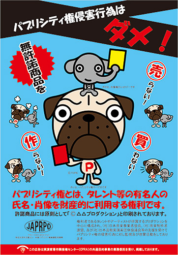 認定マークを付与することにより当機構が認定する権利者については「正規商品・不正商品」が一目瞭然に判り、不正商品の発覚に対して当機構とパブリシティ権利者が協力して警告及び、摘発や法的手段を行ってまいります。